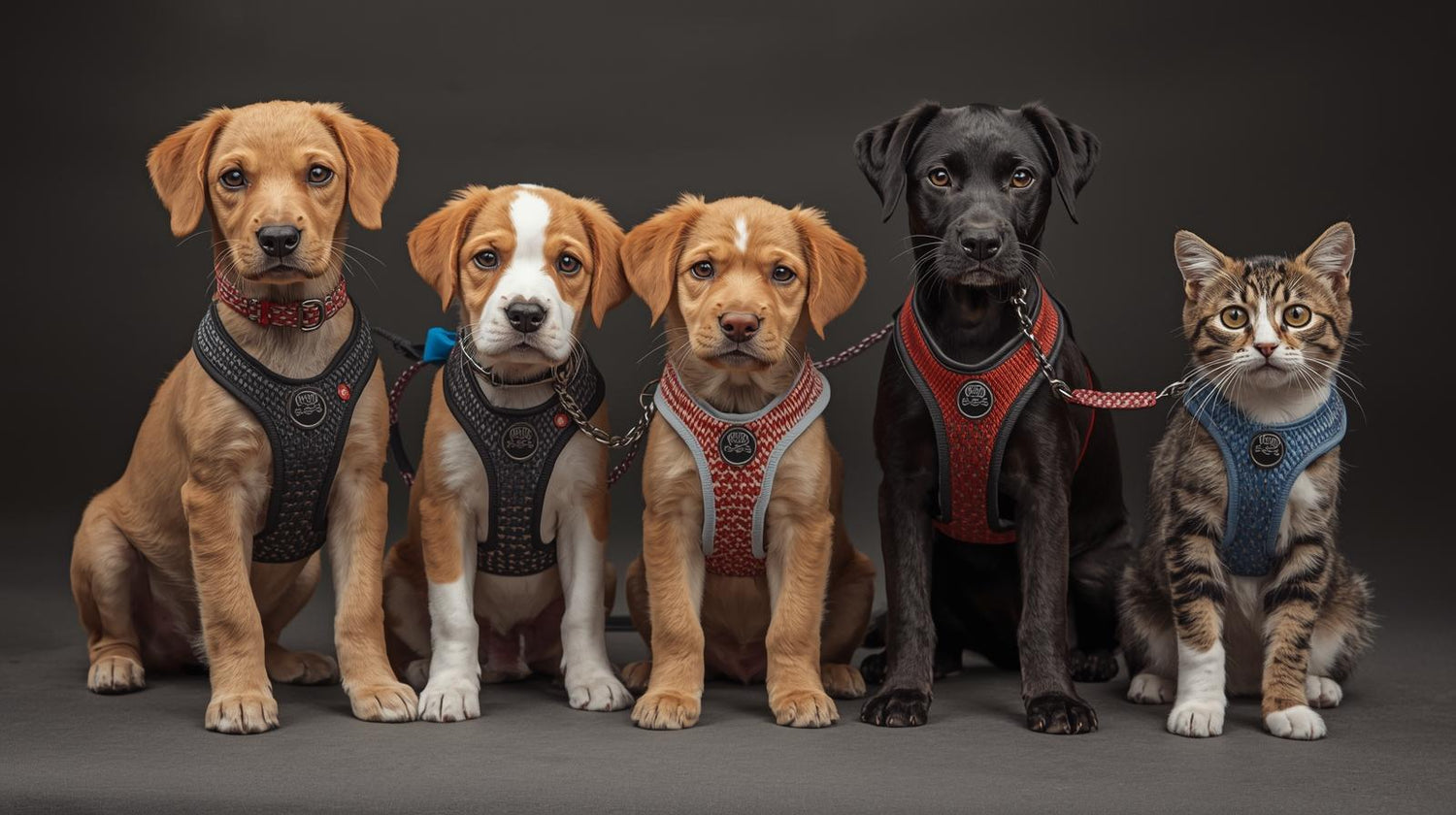 Descubre collares, arneses y correas para perros y gatos, diseñados para paseos...