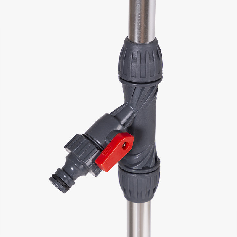 La ducha telescópica cuenta con un trípode de altura ajustable, que varía de 169 cm a 221 cm aproximadamente, y una válvula que permite ajustar el flujo del agua según tus necesidades. Sus varillas de metal y los accesorios de plástico aseguran durabilidad y resistencia.